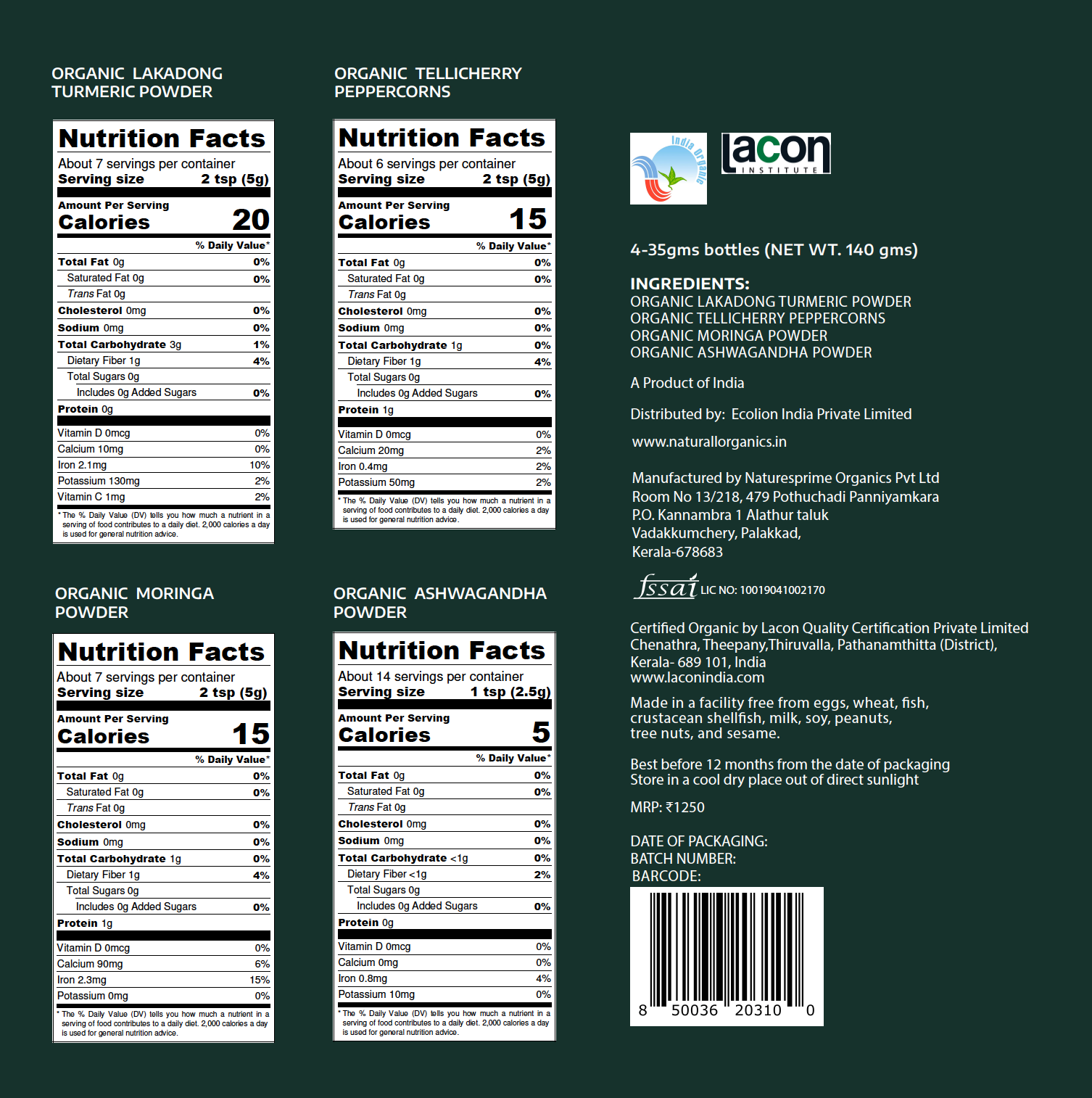 Each box contains 4 x 35gm bottles Net Wt. 140gms.